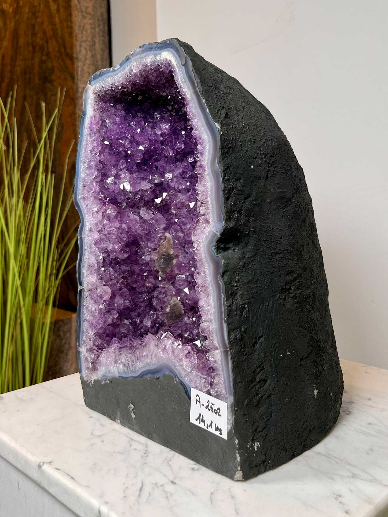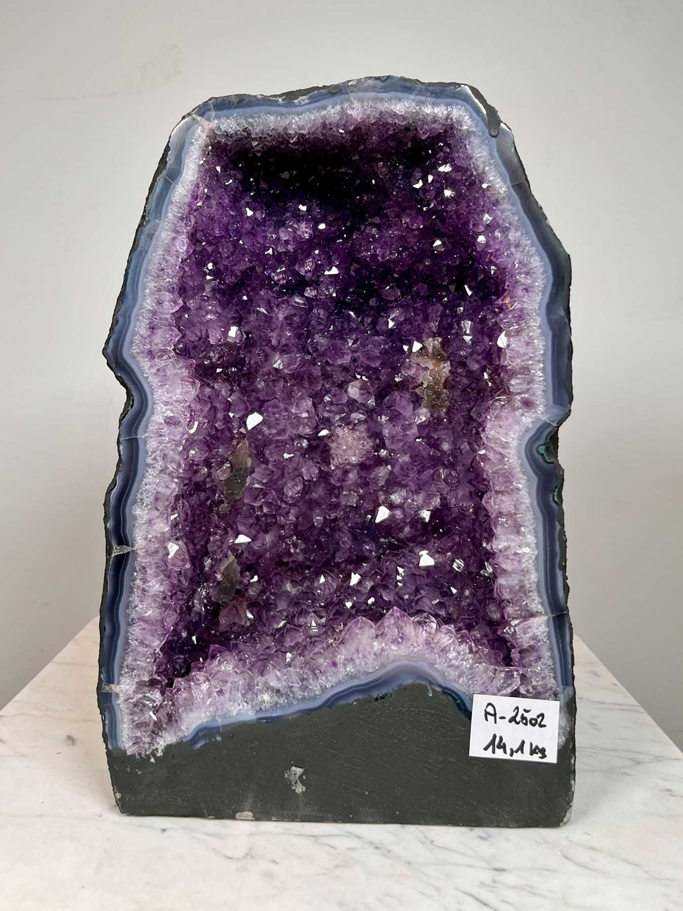 Die abgebildete Amethyst-Geode ist ein lagerndes Unikat.