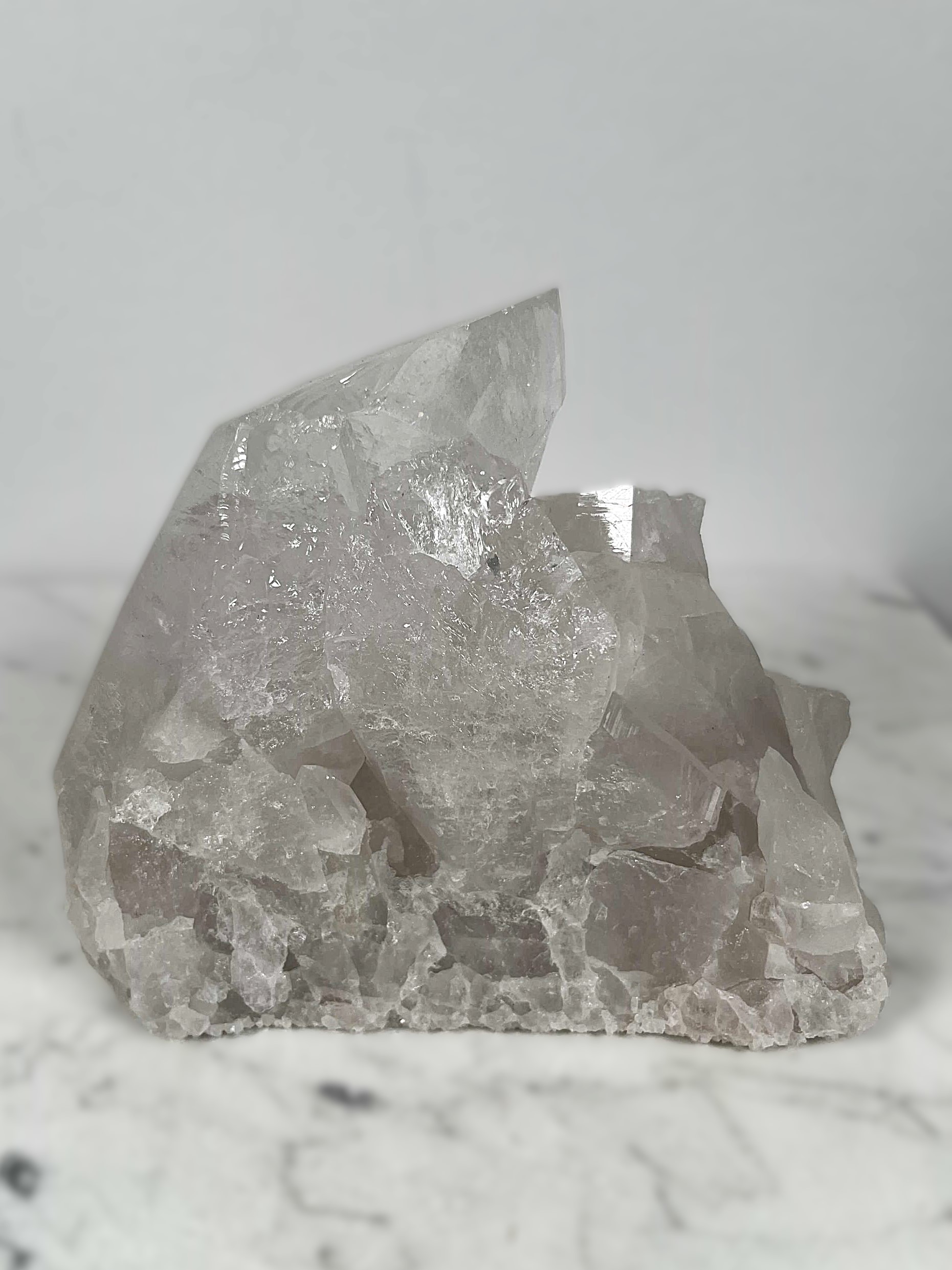 Diese natürlich gewachsene Bergkristall-Stufe mit unbehandelter Oberfläche ist ideal für energetische Anwendungen geeignet.