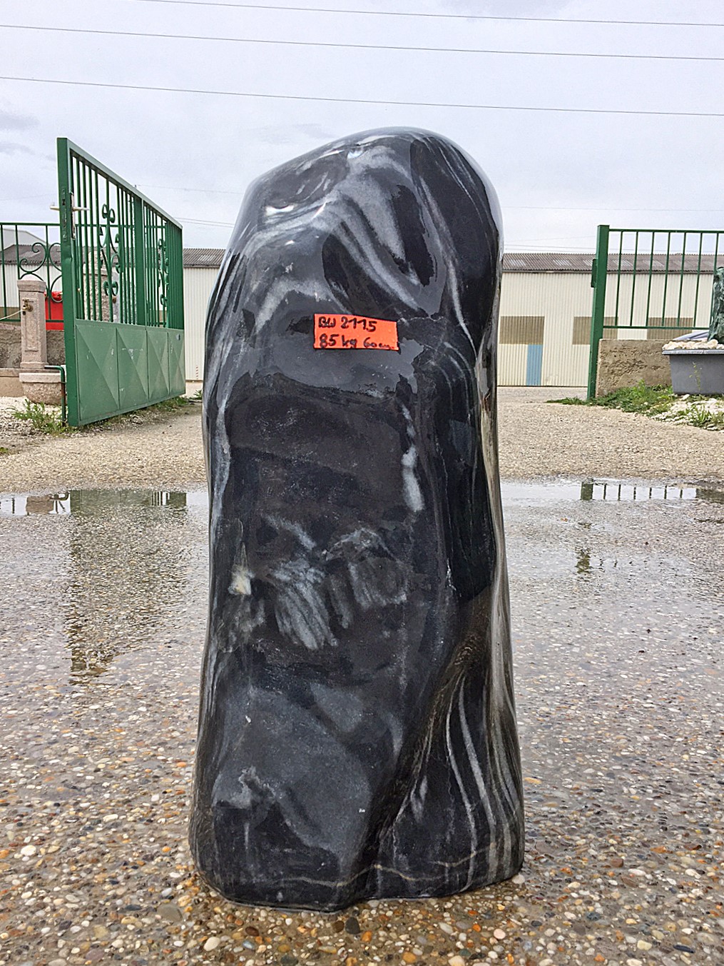 Dieser dunkelgraue bis schwarze Marmor mit seinen weißen Zeichnungen ist ein echter Blickfang und fügt sich perfekt in jedes Ambiente ein. Die Oberfläche dieses Quellsteines wurde in aufwändiger Handarbeit glatt geschliffen, was ihn noch eleganter macht.