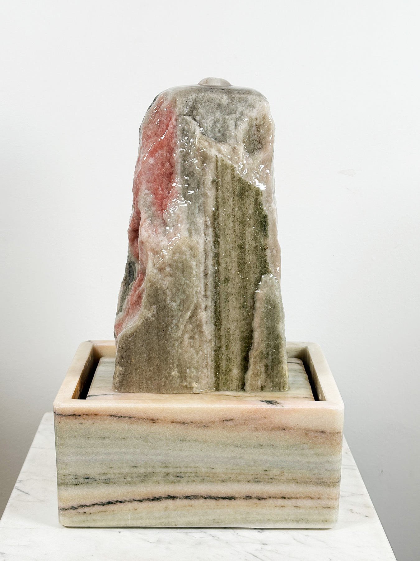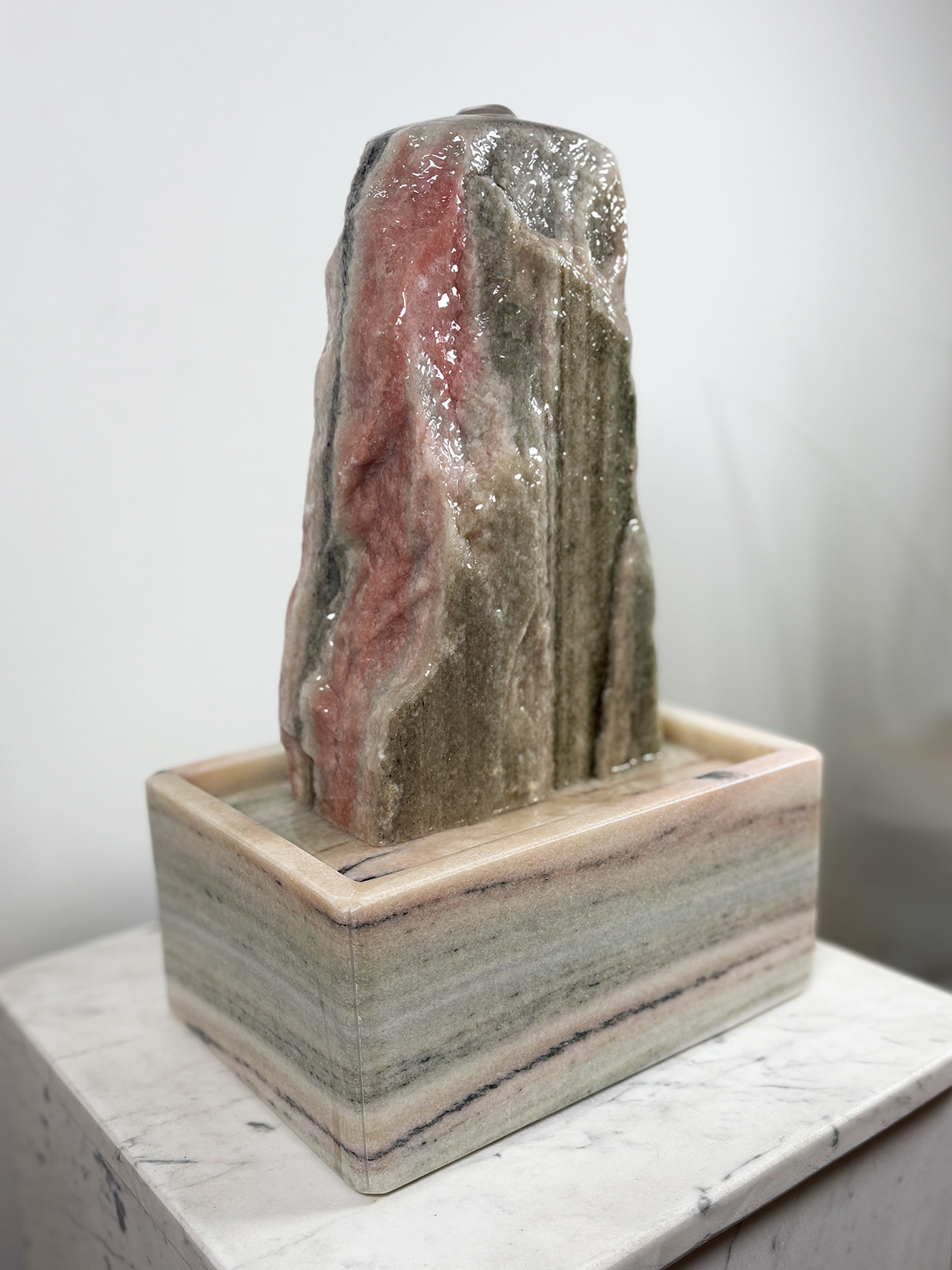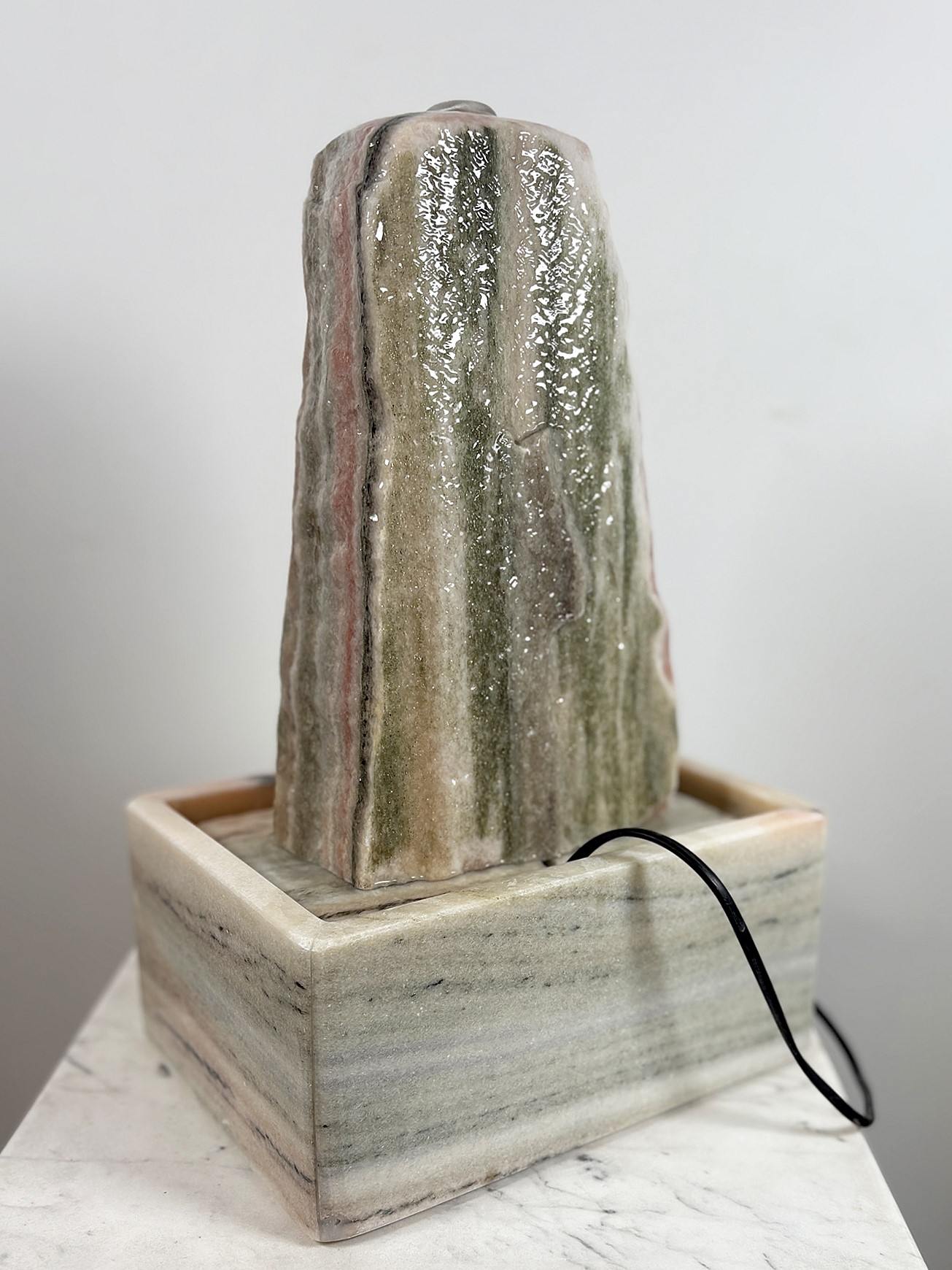 Bei diesem besonderen Unikat handelt es sich um einen naturbelassenen Findling aus dem eindrucksvoll gemusterten norwegischen Marmor “Fantasia”. Seine einzigartige Zeichnung macht jeden Brunnen zu einem unverwechselbaren Einzelstück.