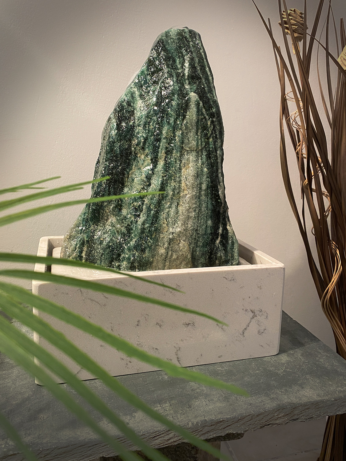 Holen Sie sich ein Stück der wunderschönen norwegischen Natur nach Hause. Bei diesem Unikat handelt es sich um einen Findling aus dem Material “Lofoten Grün”. Die Wanne wurde in unserer Werkstatt aus weißem Kunststein hergestellt, welcher dem allseits bekannten “Carrara Marmor” nachempfunden wurde.