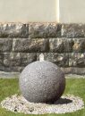 Aus massivem grauen Granit hergestellte Kugel mit gestockter Oberfläche und einer kleinen Standfläche.
