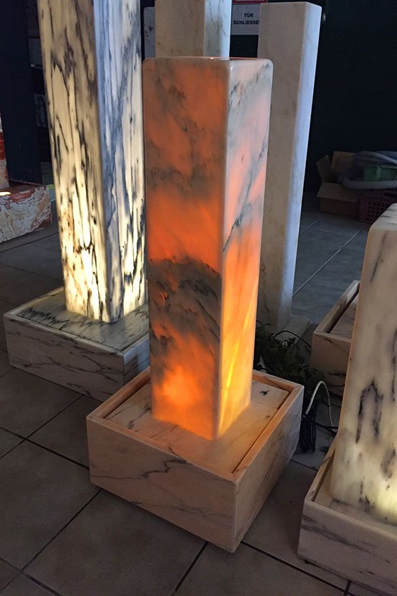 Naturstein-Hohlstele aus dem harmonischen Marmor “Rosa Portogalla” (Herkunft: Portugal); von innen beleuchtet!