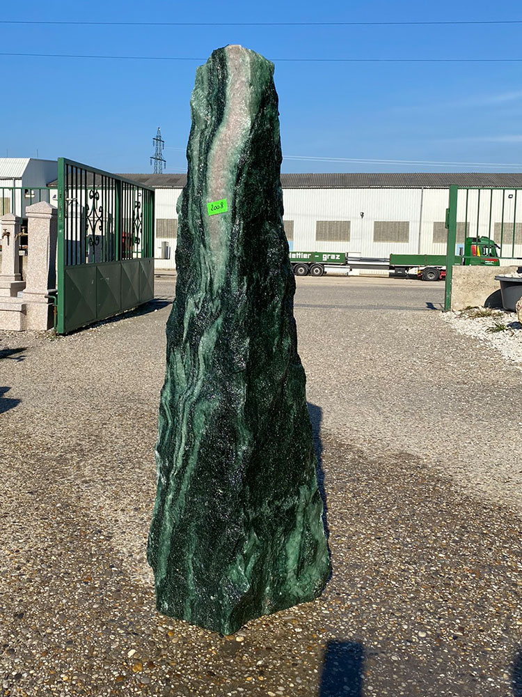 Herrlich gefärbter und geaderter Quarzit mit hohem Fuchsit-Anteil aus dem hohen Norden (Herkunft: Norwegen – Oberhalb des Polarkreises!). Das satte tiefe Grün dieses Materials sucht seinesgleichen. Das Material ist 100% frostsicher!