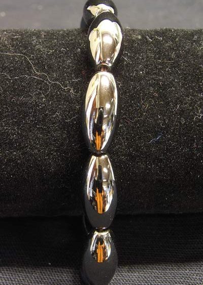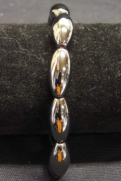Auf diesem Armband sind kleine künstliche Magnete (Hämatin) mitverarbeitet.