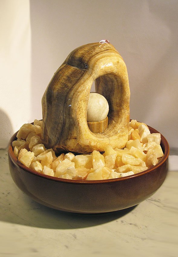 ) Onyx-Quellteil mit drehender Marmor-Kugel d: 8 cm