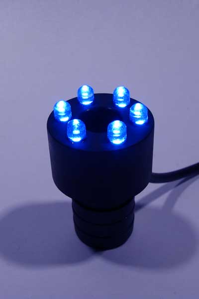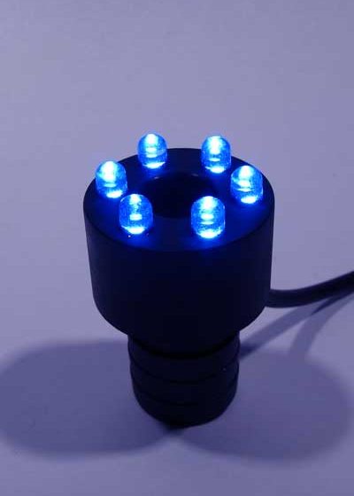 Stimmungsvolle Quellbeleuchtung durch stromsparende LED-Lichter in blau!