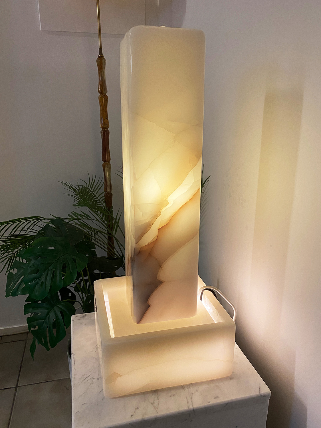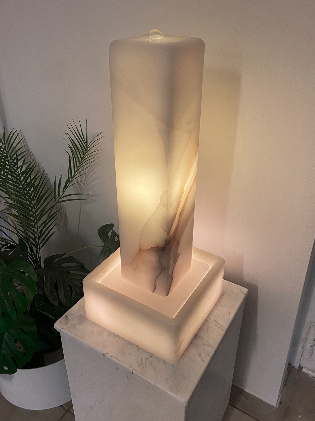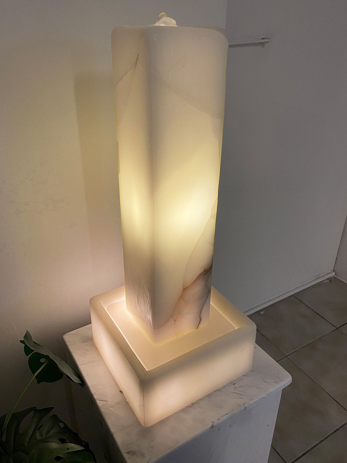 Hier handelt es sich um eine von innen beleuchtete Hohlstele aus dem Material “White Onyx”. Auch die Wanne wurde aus diesem edlen Naturstein in unserer hauseigenen Werkstatt hergestellt. Ein kompakter und eleganter Licht-Brunnen, welcher eine angenehme Atmosphäre in jeden Raum zaubert!