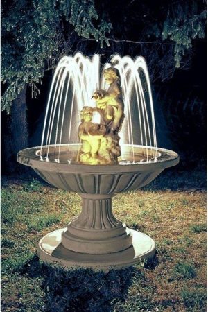 Im Lieferumfang sind eine Pumpentechnik, ein Sprühring sowie 2 LED-Scheinwerfer inkl. Trafo enthalten.