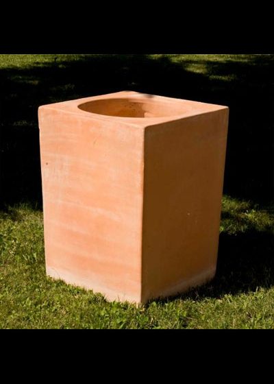Dieses Pflanzengefäß überzeugt durch eine außergewöhnliche Form, da es außen viereckig und innen rund ist. Ansonsten ist es sehr schlicht gehalten und eignet sich ausgezeichnet zur Bepflanzung.