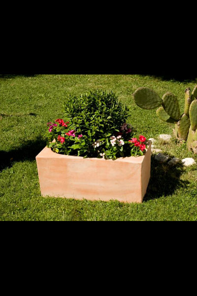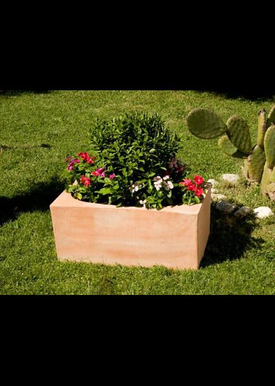 Dieses Pflanzengefäß überzeugt durch eine außergewöhnliche Form, da es außen rechteckig und innen oval ist. Ansonsten ist es sehr schlicht gehalten und eignet sich ausgezeichnet zur Bepflanzung.