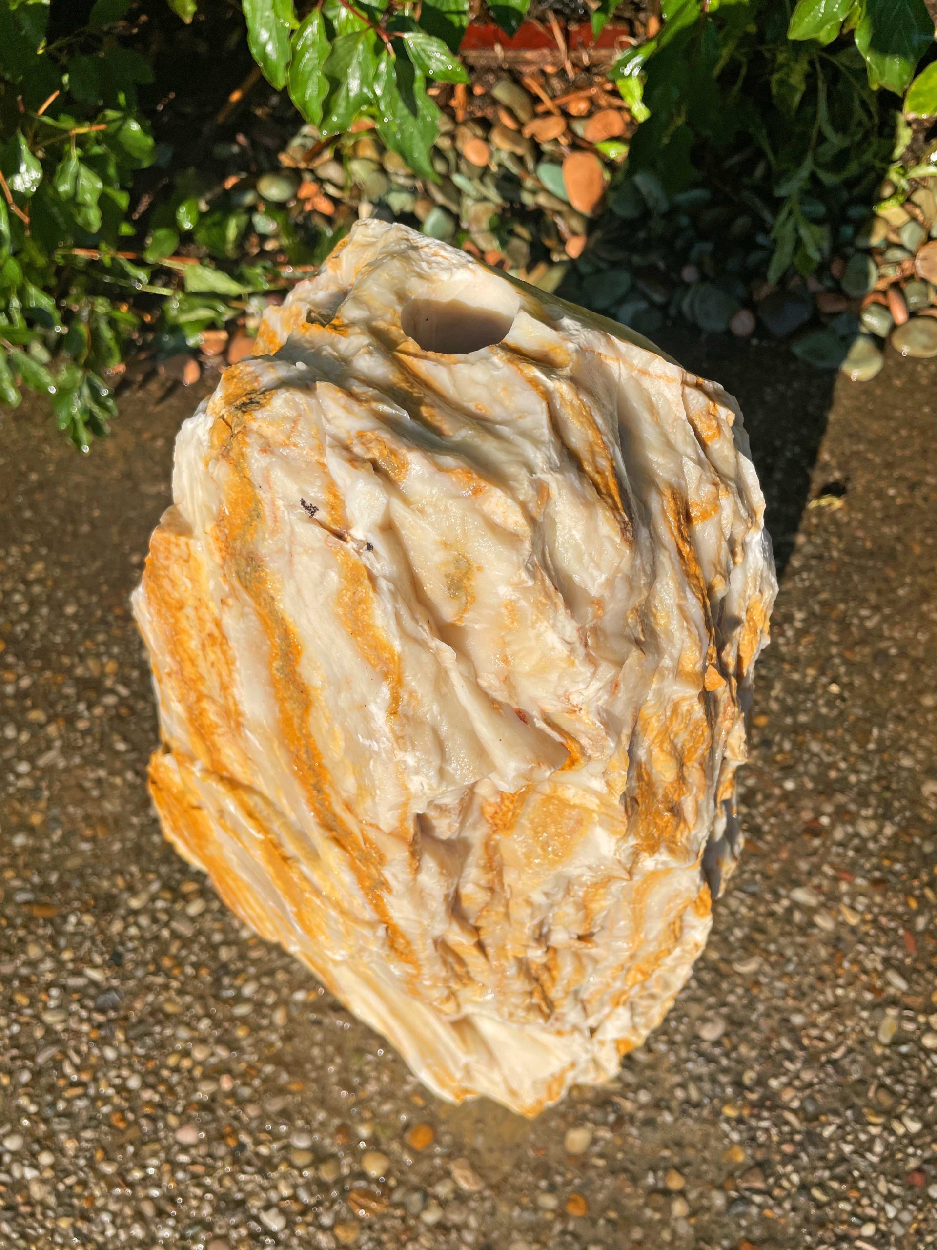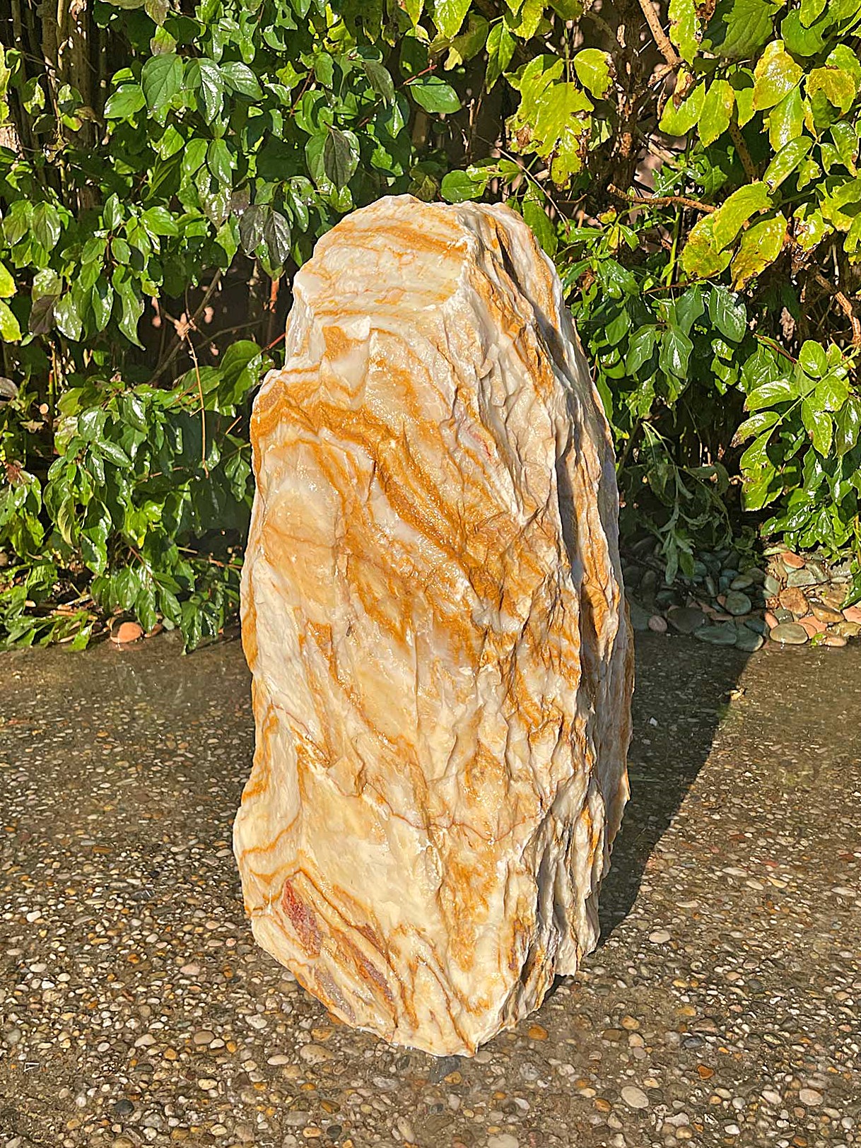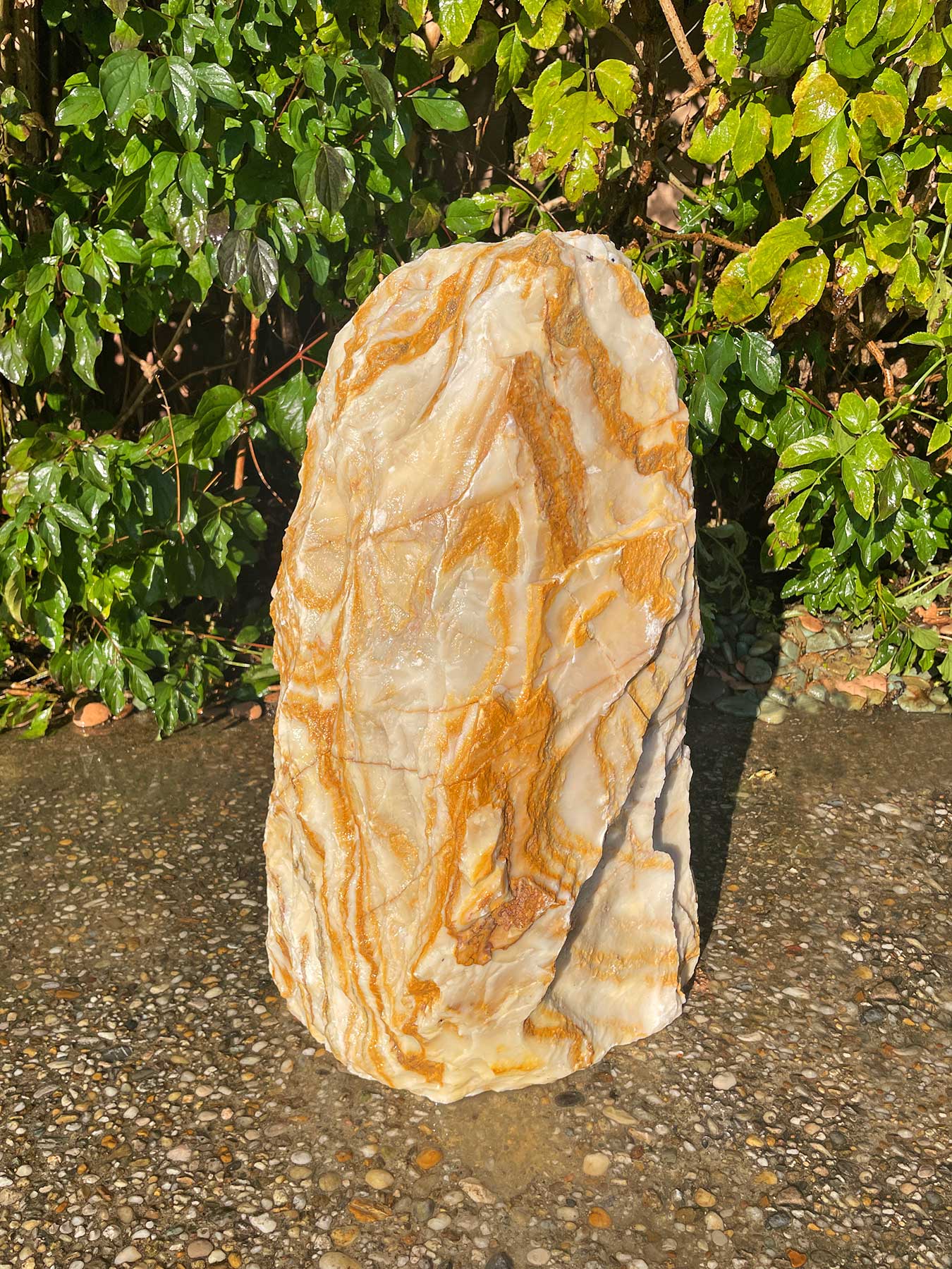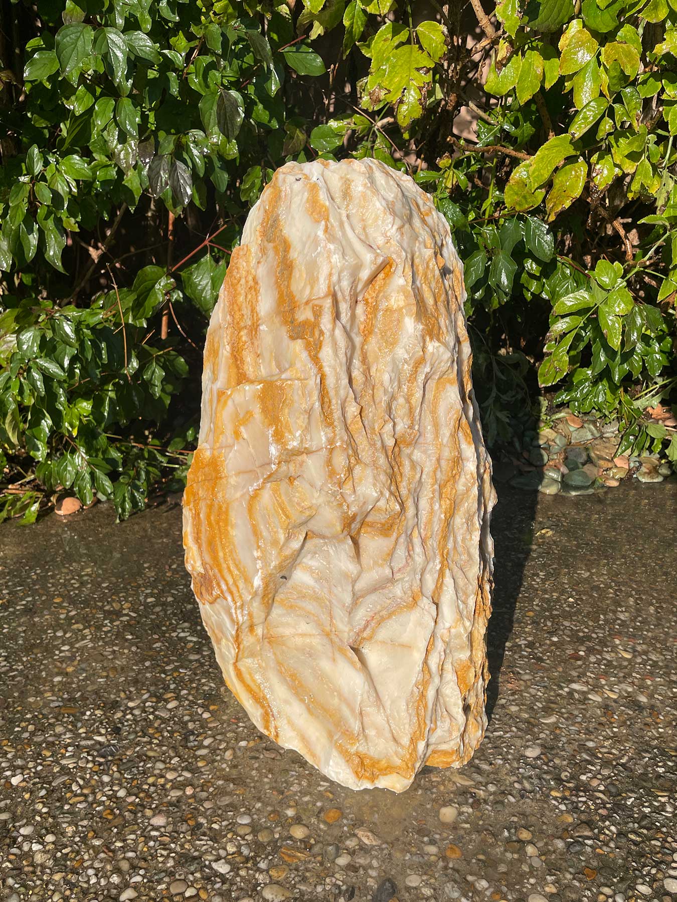 Wunderschön gezeichneter gelb-weißer Marmor aus dem Ägäis-Raum. Durch seine hellen und leuchtenden Farben hebt er sich besonders gut vom Grün ihres Gartens ab.