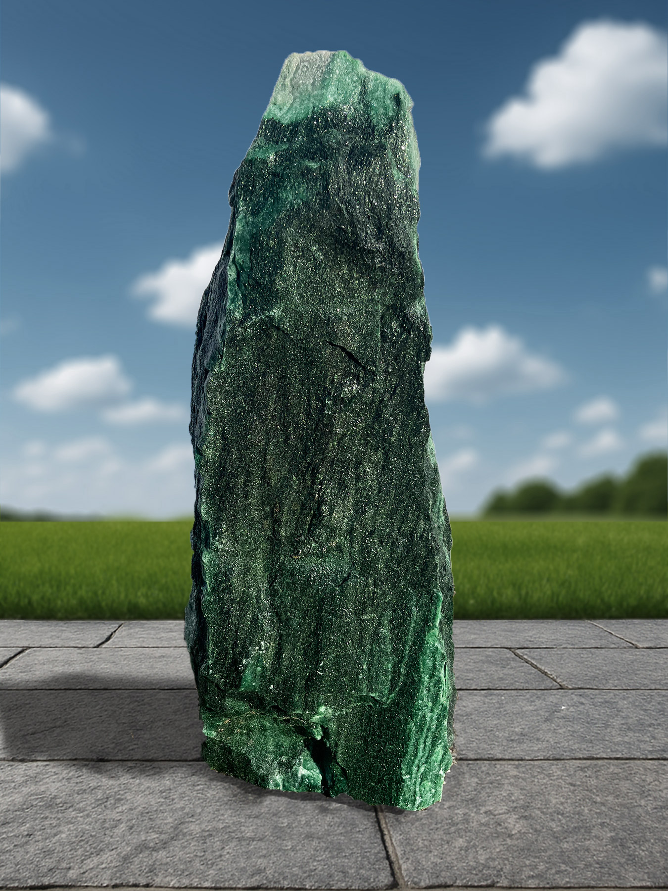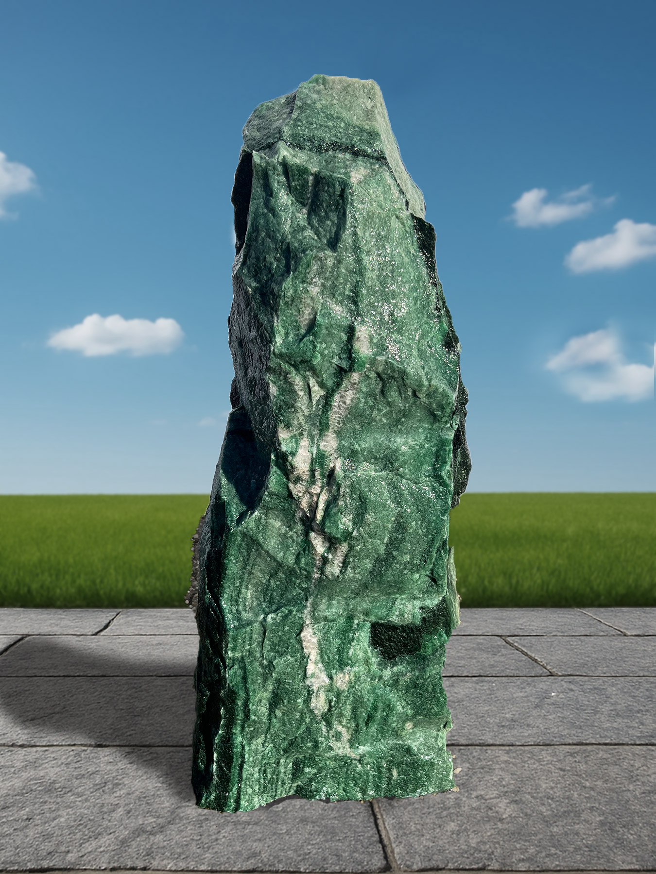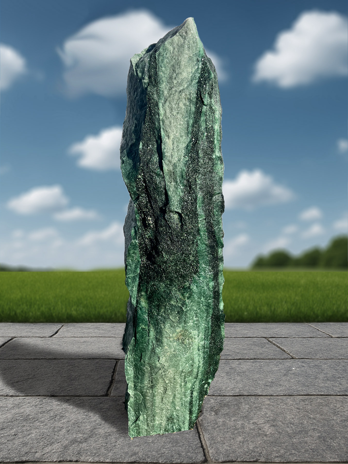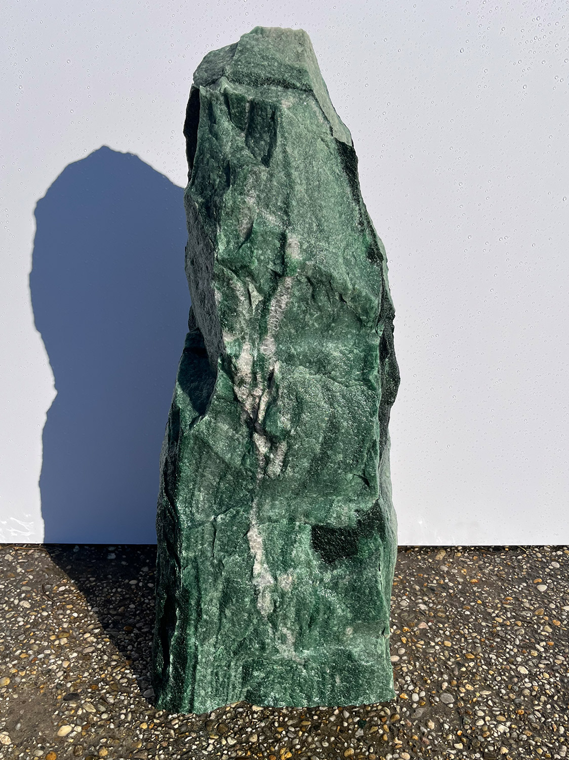 Atemberaubend ist dieser wundervoll gefärbte und geäderte Quarzit mit einem hohen Anteil an Fuchsit. Der Stein stammt aus dem hohen Norden Norwegens, oberhalb des Polarkreises. Er beeindruckt mit seinem satten, tiefen Grün.