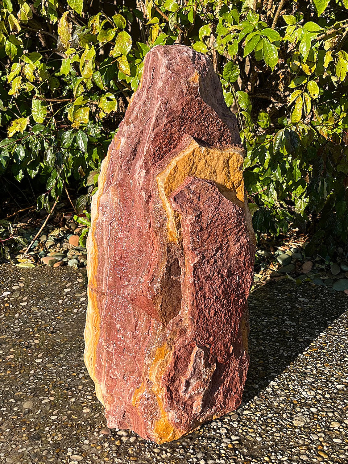Dieser schön gestreifte Onyx aus dem Ägäis-Raum besticht durch seine feine Zeichnung und durch sein wunderbares Farbenspiel. Dieser Stein wird ein herrlicher Blickfang in Ihrem Garten sein.