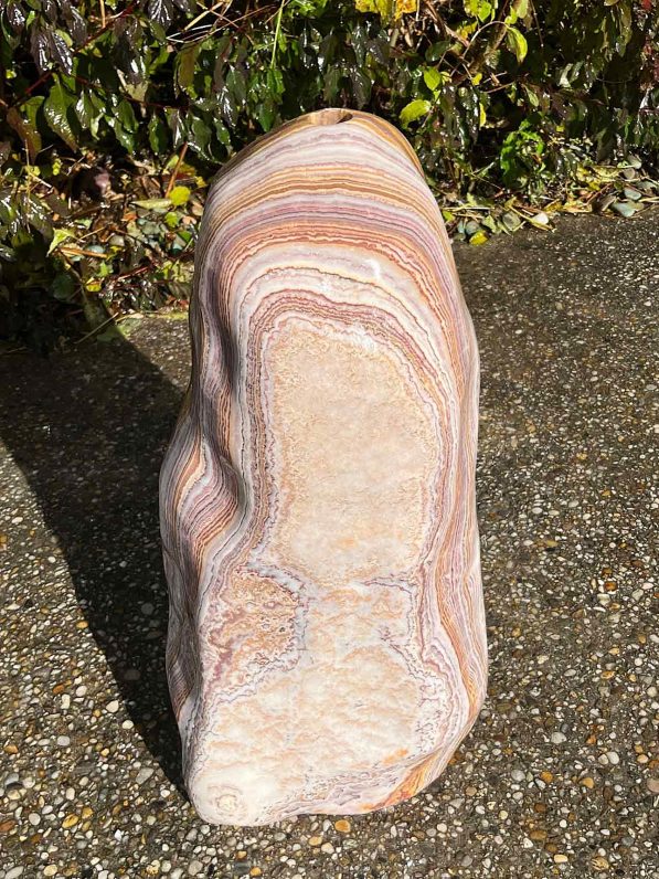 Dieser schön gestreifte Onyx aus dem Ägäis-Raum besticht durch seine feine Zeichnung und durch sein wunderbares Farbenspiel. Dieser Stein wird ein herrlicher Blickfang in Ihrem Garten sein.