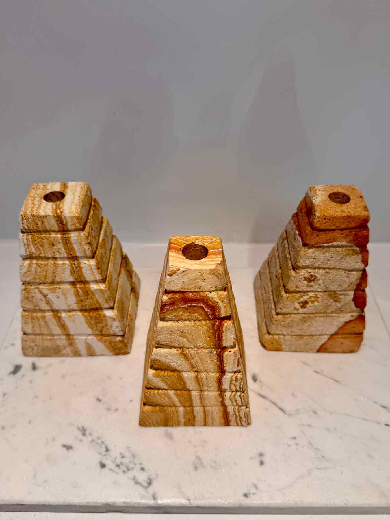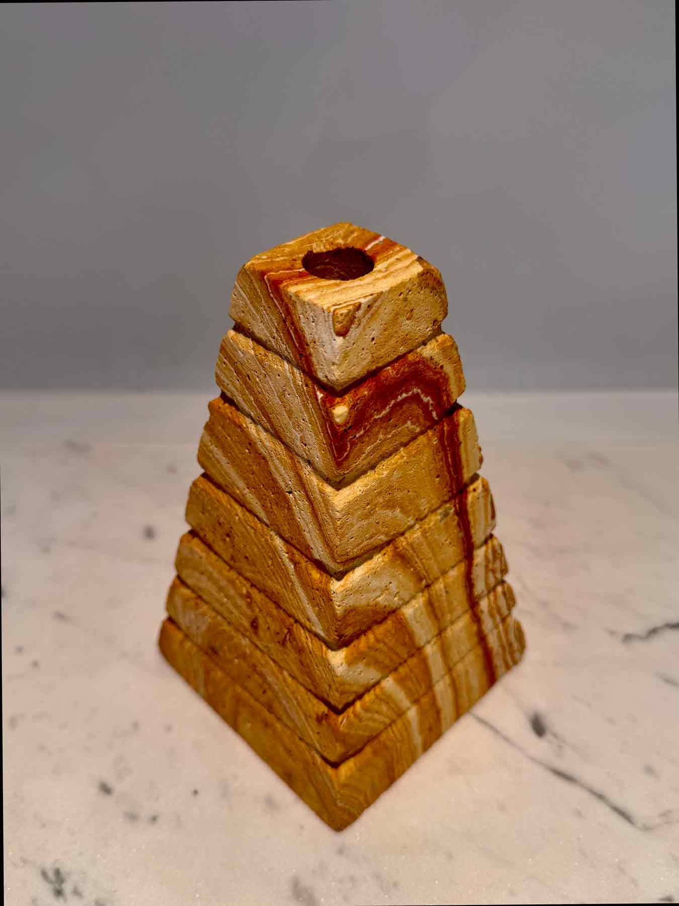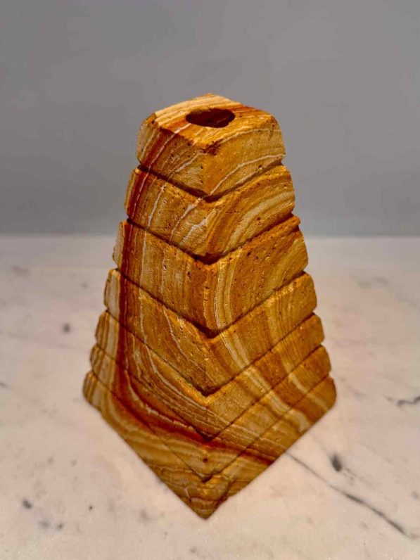 Dieser Brunnenstein in Form einer Pyramide ist aus dem wunderschönen Regenbogen Sandstein gefertigt.