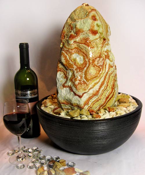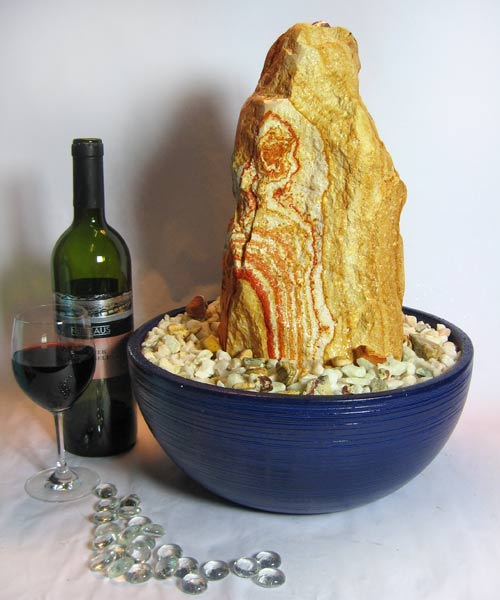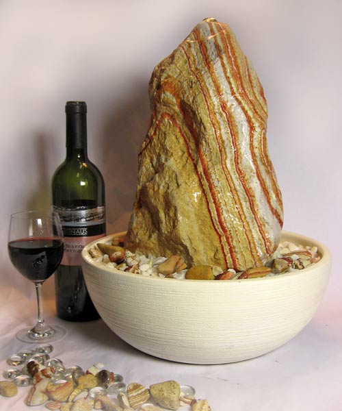 Farbenfroher Natursteinbrunnen in stattlicher Größe.