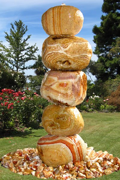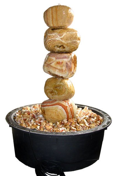 der bunt geaderte Sandstein aus Kleinasien bringt lebensfrohe Atmosphäre in jeden Garten.