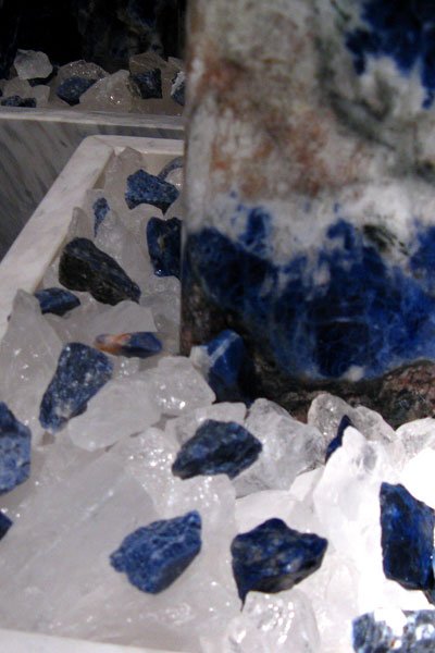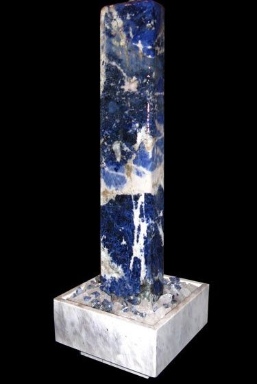 Dieser wunderschöne Stelenbrunnen ist ein echtes Sonderstück. Sehr selten bekommt man dieses hochwertige Sodalith-Material in solchen Dimensionen.