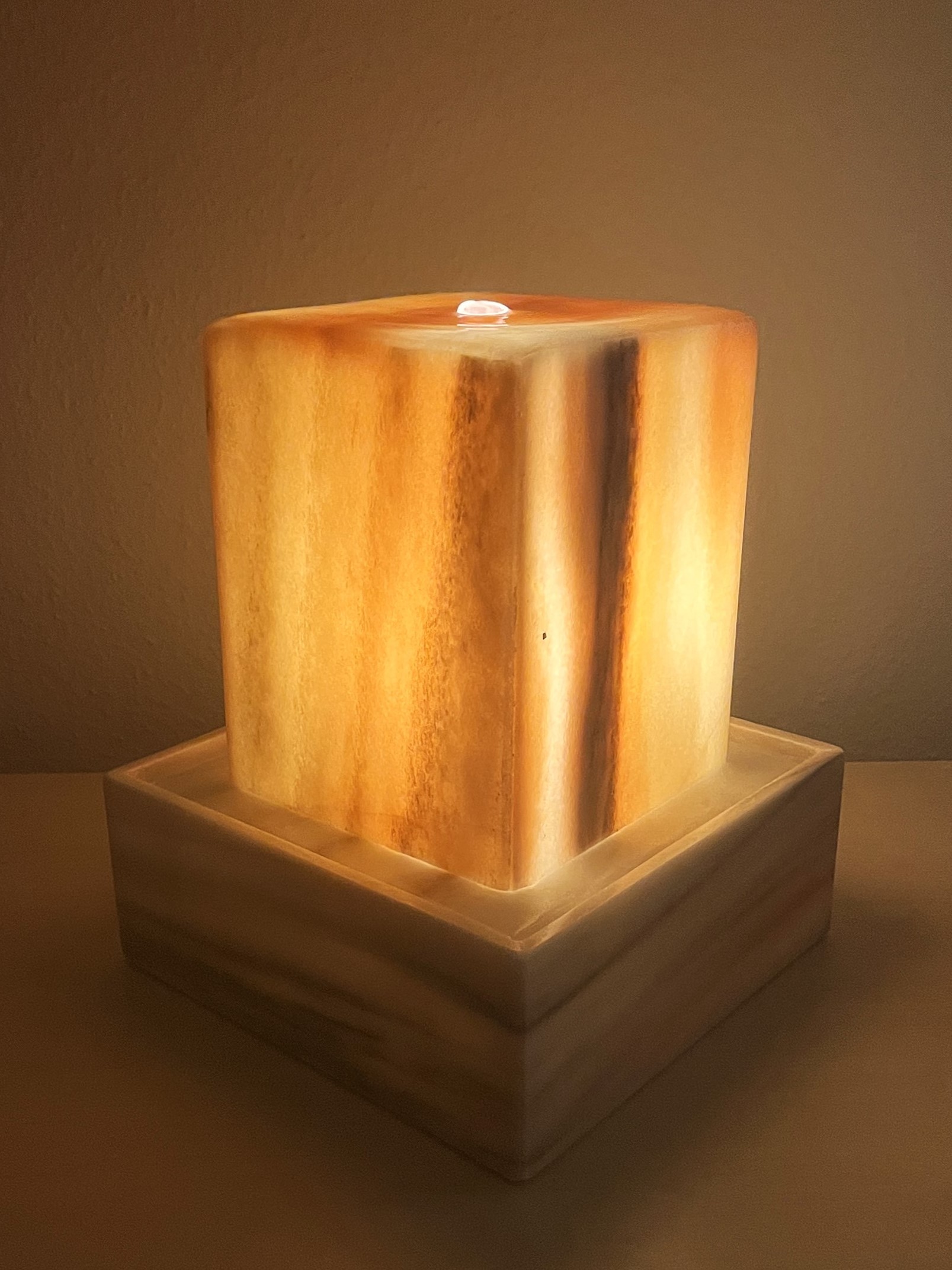 Dieser wunderschöne Tischbrunnen wird aus edlem Sölker Marmor aus Österreich gefertigt. Der kraftvolle Marmor-Hohlkörper ist von innen sanft beleuchtet und bringt die faszinierenden Farbspiele dieses Natursteins eindrucksvoll zur Geltung.
