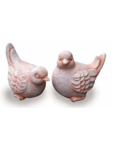 Dieses Vogelpaar würde es sich gerne in Ihrem Garten gemütlich machen. Es ist detailiert ausgearbeitet und handlich. Das Material besteht aus Terracotta.