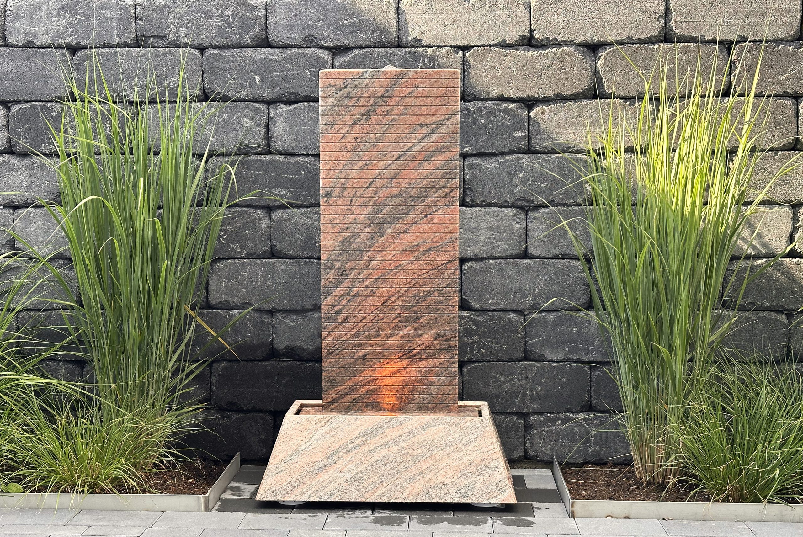Die Wasserwand “Bombay” aus dem edlen indischem Granit “Juparana” verbindet natürliche Eleganz mit zeitloser Stärke. Der fein gemaserte Naturstein steht für Bodenständigkeit & Beständigkeit und fügt sich harmonisch in klassische wie auch modern gestaltete Wohnräume ein.