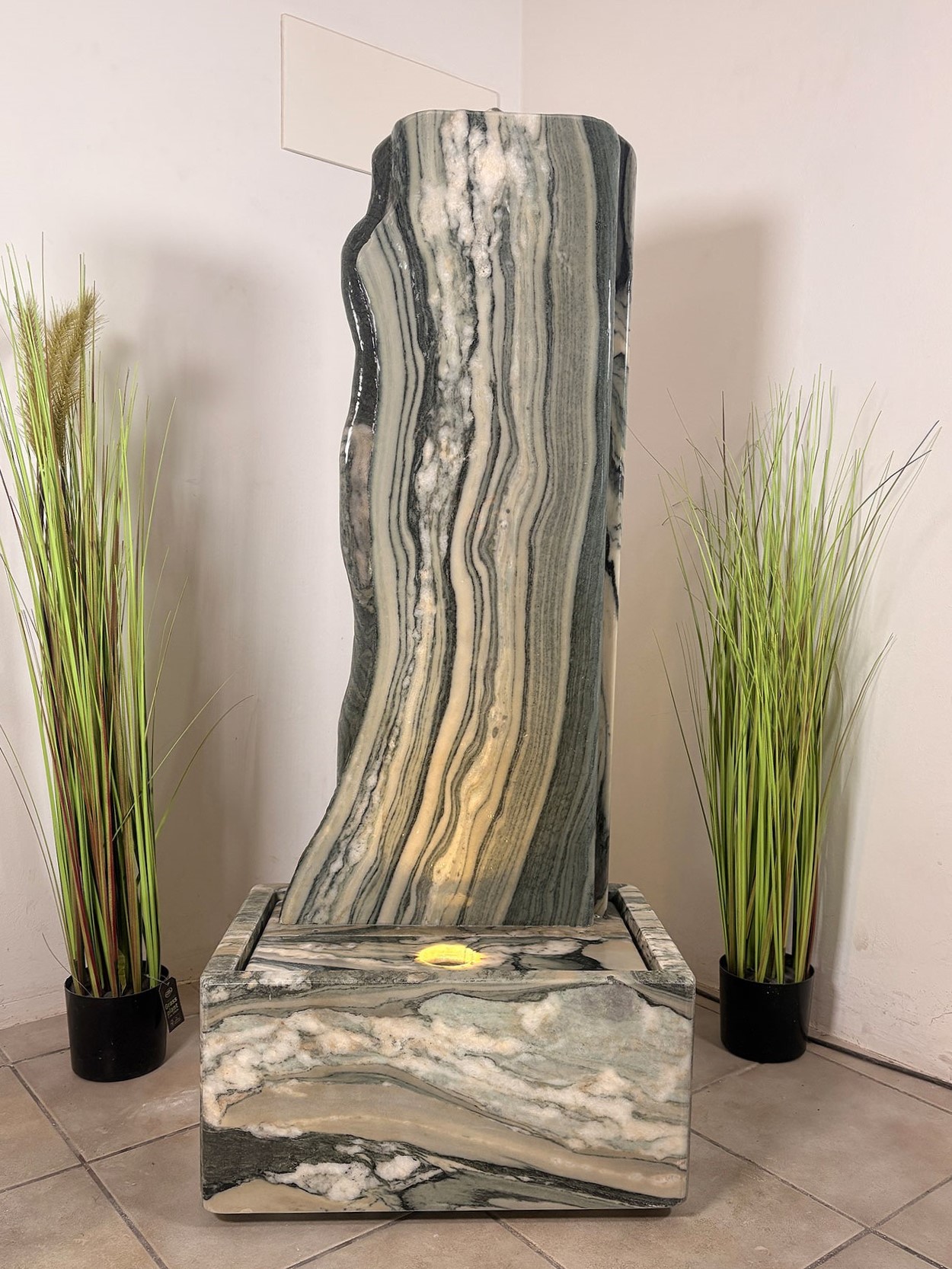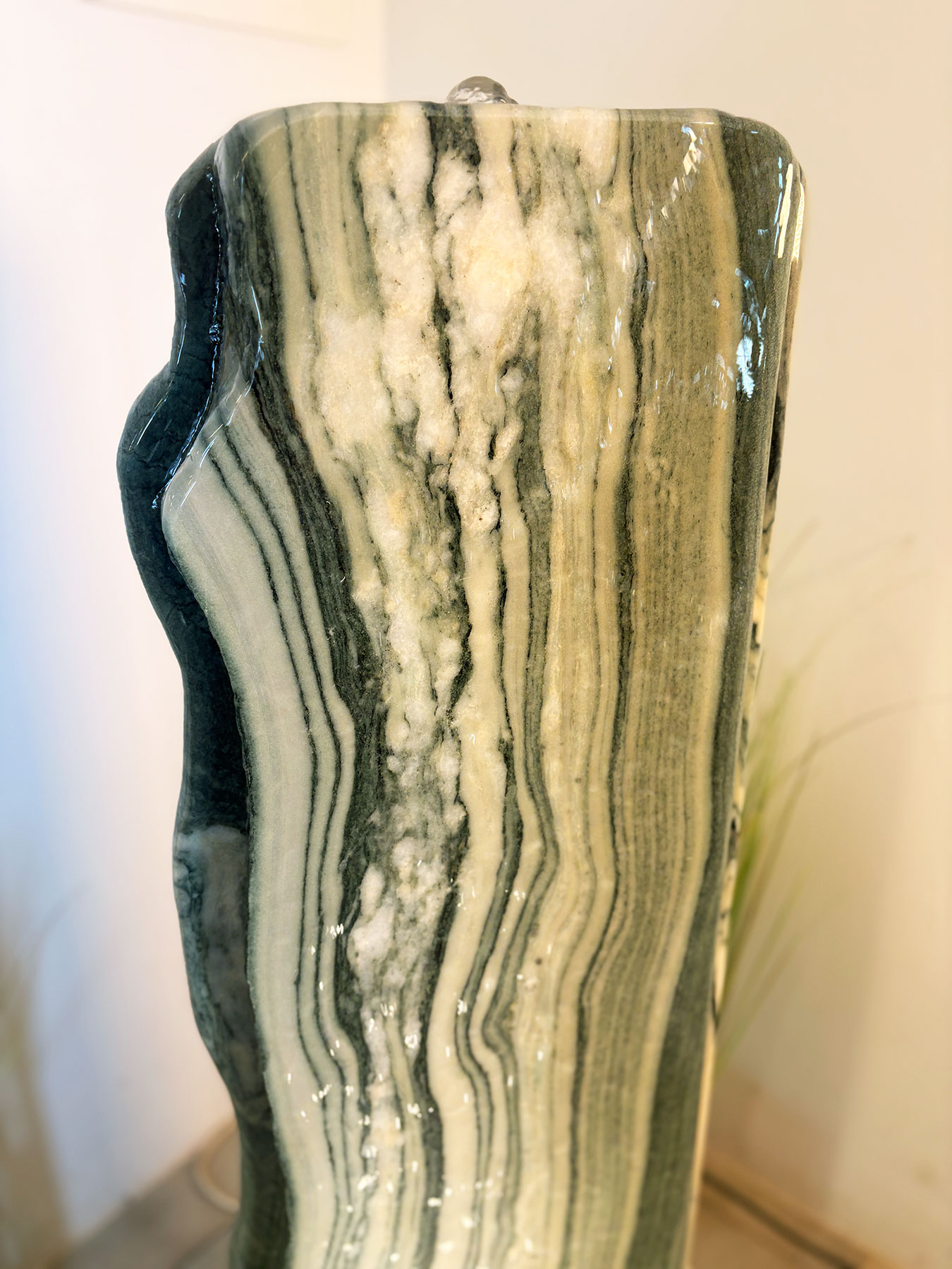 Diese Wasserwand aus dem edlen griechischen Marmor “Cipollino” ist ein stilvoller Luftbefeuchter, der durch seine natürliche Schönheit und hochwertige Verarbeitung überzeugt.